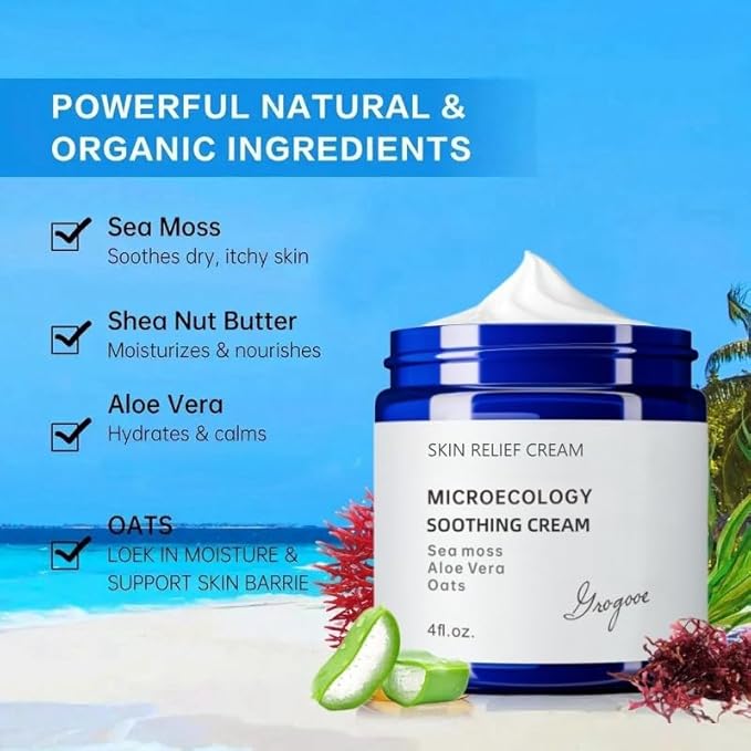 Natural Organic Eczema Soothing Cream Made With Sea Moss Aloe Vera, Oats! Sensitive Skin Dry Skin Hydrating Comfort Moisture Fragrance Free Skin care