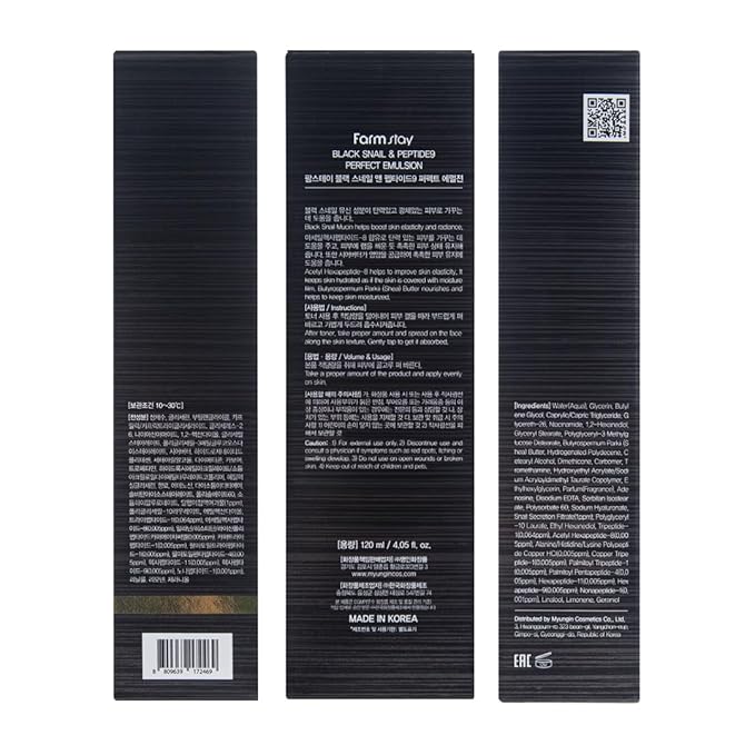 FARMSTAY Black Snail & Peptide 9 Perfect Emulsion, Snail Mucin Moisturizer for Elastic & Glow Skin, Hydrating & Soften, Anti-aging, Skin Barrier Repair, for Women & Men, Korean Skin Care, 4.05 fl.oz