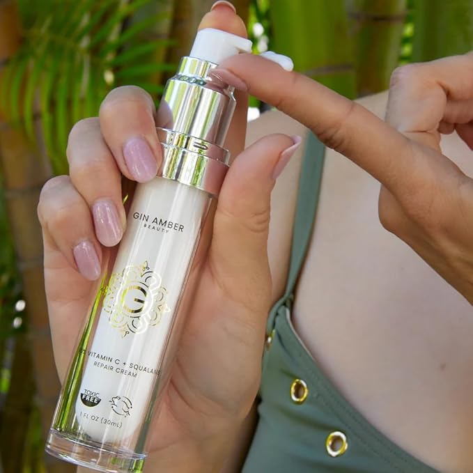 Gin Amber Beauty - Vitamin C (10%) + Squalane Repair Cream - Face Moisturizer - Facial Cream- Dark Spot Corrector - Primer - (30ml - 3-Packs)