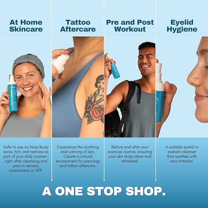 • Bonus for Tattoo & Workout Enthusiasts: As a potent cleansing agent, HOCl is safe for tattoo aftercare. Getting breakouts after a sweaty workout? Bring this quick and convenient cleansing spray to the gym for pre/post-workout use!