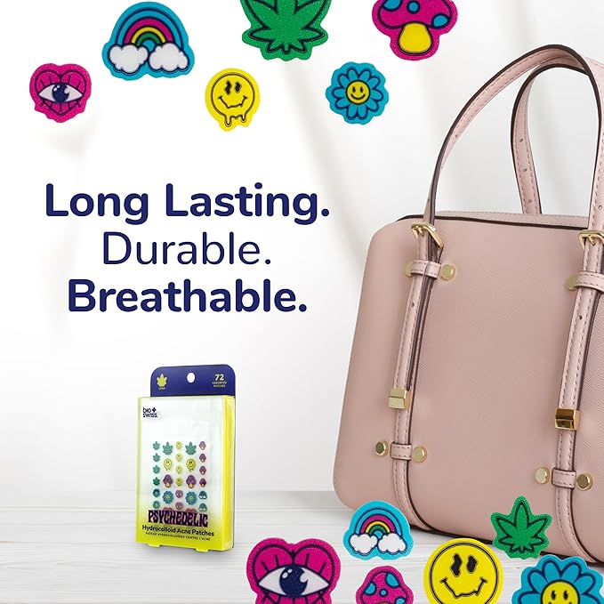 • PSYCHEDELIC ACNE PATCHES: Tackle zits and blemishes effectively and achieve clear and smooth skin with our Psychedelic Acne Patches. Our patches for pimples come in 6 funny and cute assorted styles: Melted Smiley Face, Mushroom, Pot Leaf, Rainbow, Eyeball Heart, and Smiley Flower