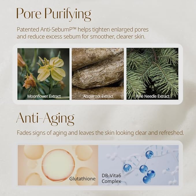 • BOTANICAL-BASED FORMULA WITH NO HARSH ADDITIVES: Infused with 17 types of plant-derived extracts, including Anti-SebumP complex (evening primrose, pine leaf, and pueraria root), this cleanser helps refine enlarged pores and control excess oil. The addition of Vitamins C and E work together to support skin clarity and vitality. Free from 20 harsh ingredients for a safe and gentle cleanse.