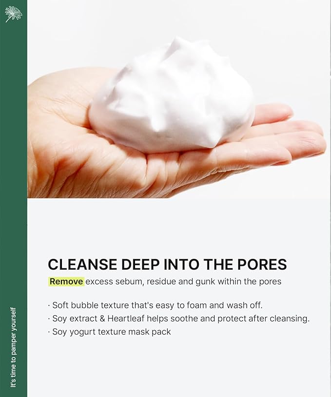 Soy Yogurt Cleanser, Facial Cleanser with Black Soybeans, Greek Yogurt Texture, Face Mask, Scrubber, Deep Pore Face Wash, Blackhead Remover, Korean SkinCare (3.38 fl.oz.)