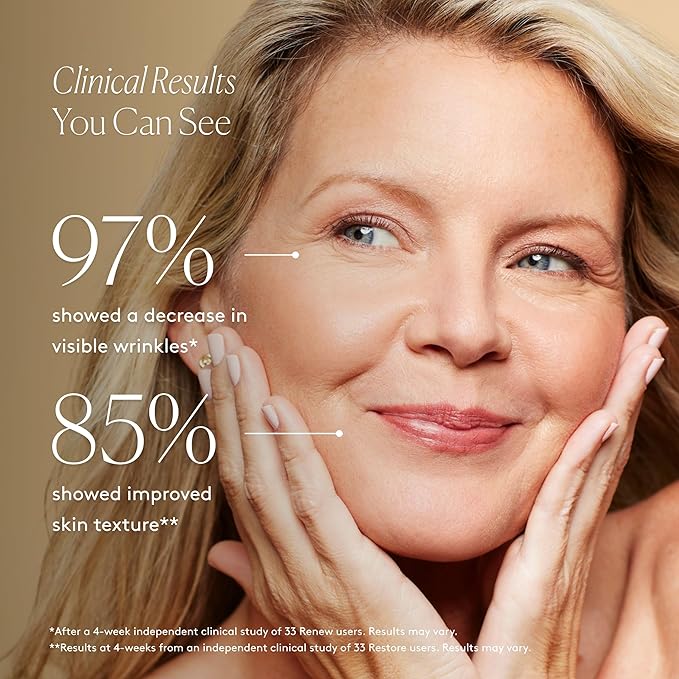 • CLINICAL RESULTS: In an Independent Clinical Study with Renew users, 97% showed a decrease in the appearance of fine lines and wrinkles, and 100% showed an increase in hydration.* In an Independent Clinical Study with Restore users, 100% showed improved skin hydration, and 97% showed a decrease in visible fine lines and wrinkles.**
