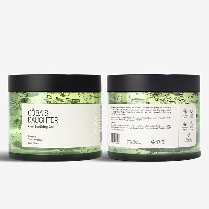 COBA'S DAUGHTER 99% Pure Aloe for Sunburn Relief & After Sun Recovery| Coconut Scented Aloe Vera Gel |Organic Aloe Vera Gel for Face & Body - Hair Hydration & Cooling Lotion (10.6 oz)