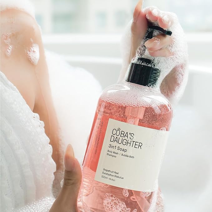 COBA'S DAUGHTER Grapefruit Peel & Eucalyptus Globulus 3-in-1 Soap | Body Wash, Bubble Bath, Shampoo | Cleanse, Nourish & Soften Skin with Inulin & Seaweed Extract | (16.9oz)