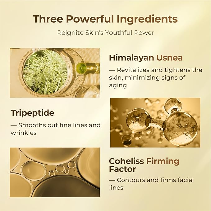• ANTI-AGING KEY INGREDIENTS: Meet Himalayan Usnea Extract – Tibet’s skin-repair secret that stimulates skin thickness + calms redness. 3X Peptide delivers fast line-smoothing, plumpness, and 24H crease defense. COHELISS tightens sagging skin with +33% collagen lift + acts as a pollution armor.