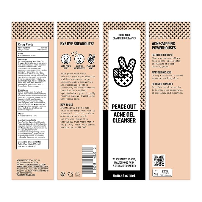 • Peace Out Skincare Acne Gel Cleanser: A powerful daily face wash that combines Salicylic Acid and Maltobionic Acid to deeply cleanse, exfoliate, and reduce the appearance of blemishes. It effectively targets face and back acne, leaving skin refreshed and clear.