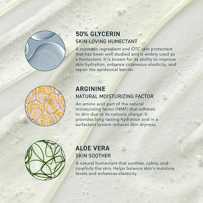 • DEEP HYDRATING FORMULA: Advanced body and face cleanser featuring 50% glycerin concentration, a powerful humectant for intense moisture retention and elasticity. Clinically proven to provide 24-hour hydration while supporting skin's natural pH balance and moisture barrier.