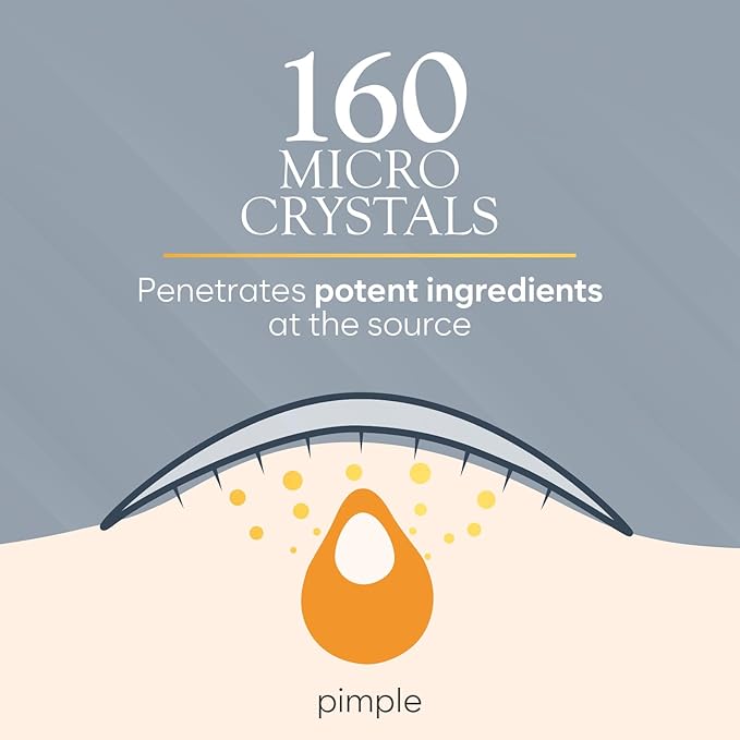 • Advanced Microcrystal Technology: Our 16mm large cystic acne patches feature 160 self-dissolving microcrystals, providing targeted care for blemish-prone skin. The microcrystals gradually dissolve, infusing ingredients such as Salicylic Acid and Hyaluronic Acid to help support clearer-looking skin.