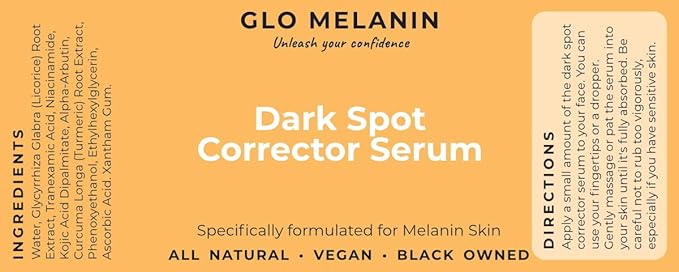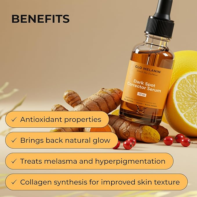 Glo Melanin Dark Spot Remover for Face - Dark Spot Corrector Serum with Vitamin C - Reduces Discoloration and Hyperpigmentation