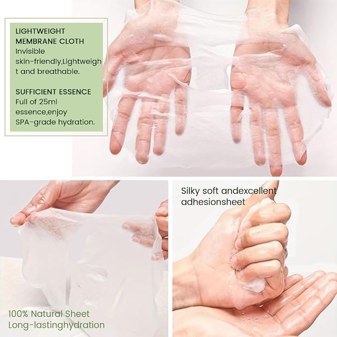 • FACIAL SKINCARE SHEET MASK:This premium women's skin care mask is silky smooth,moisturizing,refreshing and has increased efficacy and adhesion to block evaporation and lock in moisture for a hydrating effect that lasts all day