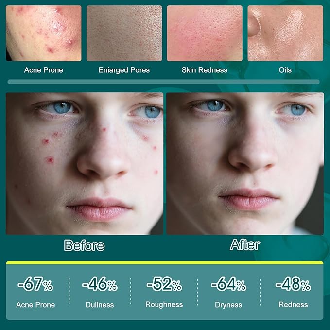 • 【Suitable for All Skin Types】——Acne Skincare Gift Set is great ideal for for all skin types that are prone to breakouts, acne, blackheads, redness, post breakout marks, enlarged pores, oily skin, often stay up late. Tea Tree Essential Oil can help remove acne, blemishes and excess oil, leaving your skin rejuvenated, improving skin elasticity and restoring even and translucent skin texture.