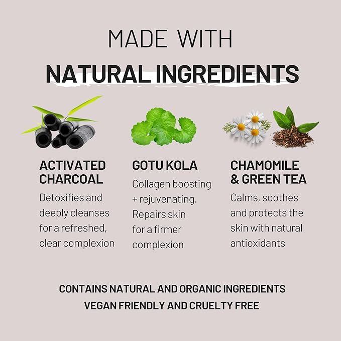 • DEEP CLEANSING. Our charcoal facewash effectively removes dirt and excess oils, leaving your skin fresh and revitalised.