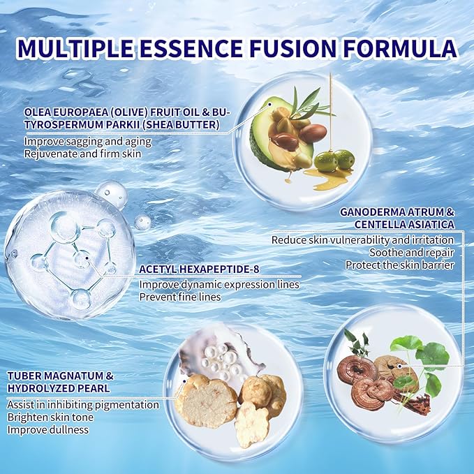 • 【Skin Type & Effect】: Suitable for all skin types, and the skin care kit contains ginseng, carnosine and various nutrients, which can moiturizes facial skin, nourishes skin base and improves roughness and dryness.