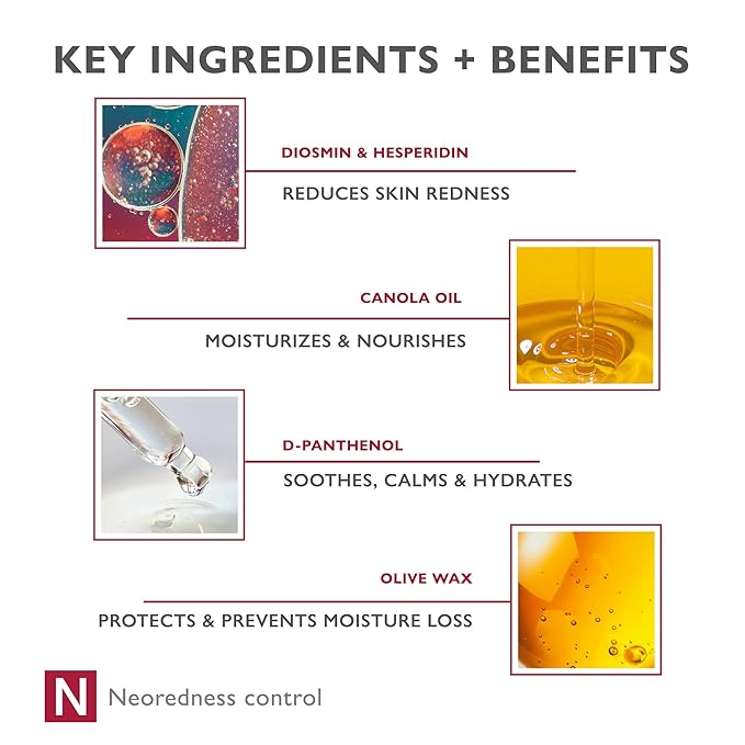 • Color-correcting: Calms visible redness and reduces flare-ups, while a natural yellow tint helps neutralize redness for a more even-toned appearance.