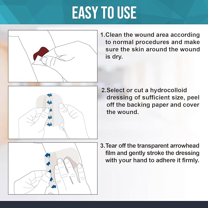 • [Waterproof, skin-friendly and easy to apply] This ultra-thin hydrocolloid patch is waterproof and breathable. You can cut the right size as needed. The hydrocolloid does not stick to wet skin, so it can be easily removed