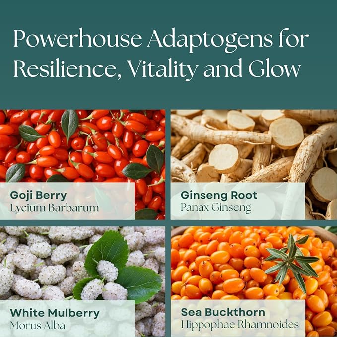 • ENRICHED WITH ADAPTOGENS: Advanced botanical ingredients with our signature adaptogen blend of ginseng, goji berry, sea buckthorn and mulberry, helping your skin to adapt to stress and enhance resilience and vitality. Naturally rich in bioflavonoids, amino acids, omega oils and resveratrol to support a radiant, resilient complexion.