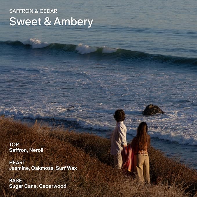 • Saffron & Cedar — This scent is warm, complex, and delicately sweet. It’s like taking a drive up the Pacific Coast where the ocean meets mountains.