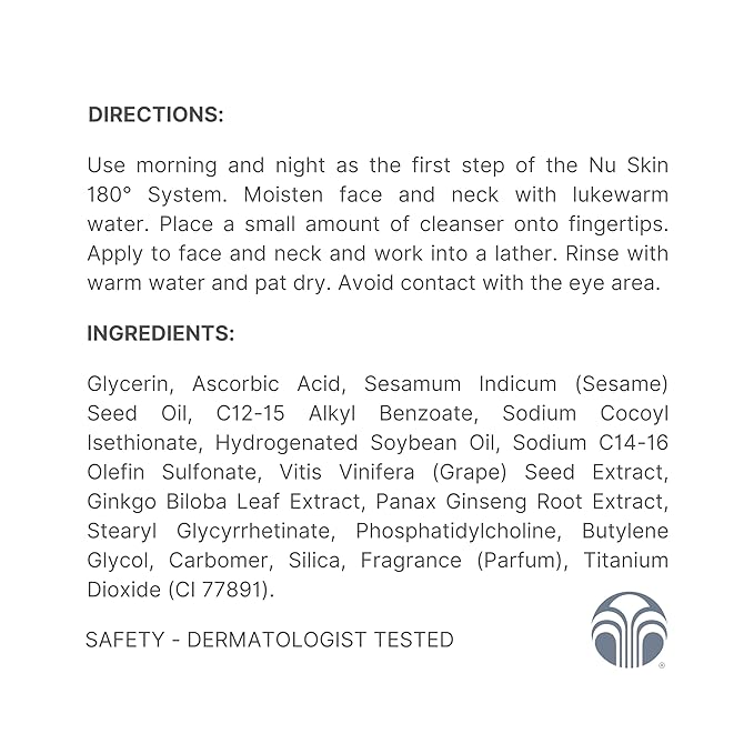 • Vitamin C Formula: Nu Skin 180° Face Wash features a 10% Vitamin C blend to refresh and cleanse skin, leaving it smooth and revitalized.