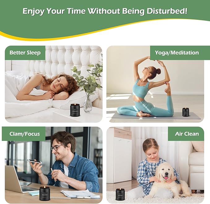 • Great Choice for Any Space --- Whether you're using them to aid relaxation, improve focus, or simply enjoy a fresh, clean atmosphere, eucalyptus candles have something to offer everyone. Their ability to purify the air, boost mood, and create a peaceful ambiance makes them a must-have addition to any home.