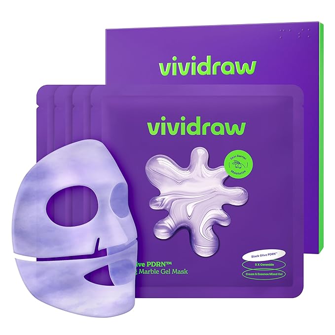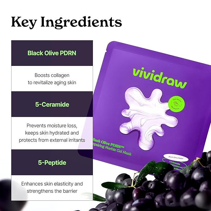 Black Olive PDRN™ Repairing Marble Gel Mask (4EA) | Real Hydrogel Korean Face Masks with Skin Barrier Repair Cream & Serum | Deep Hydration with Ceramides, Redness Relief, 24-Hour Radiance