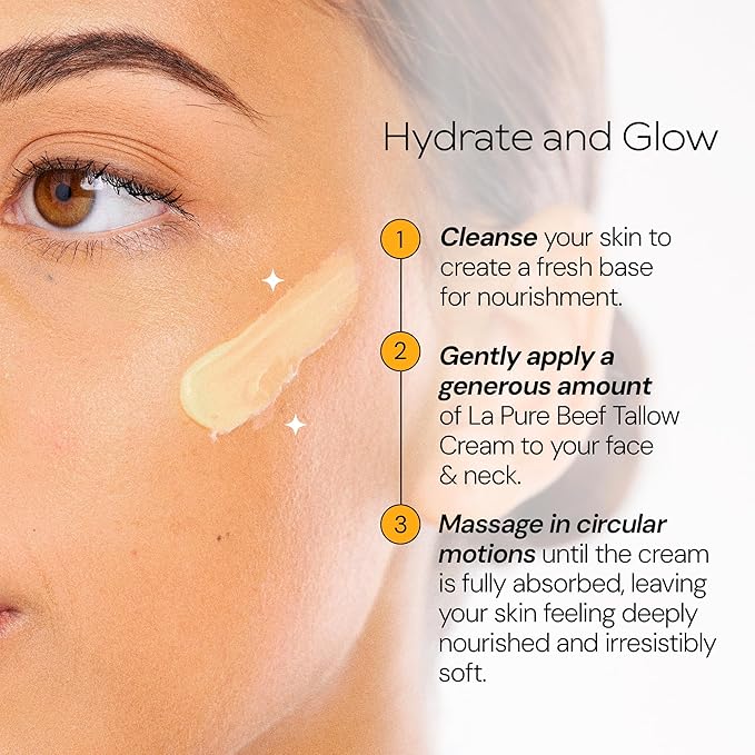 • Premium Anti-Aging & Deep Hydration Cream – Formulated with grass-fed tallow, aloe vera, and grapeseed oil, this grass finished luxurious cream deeply nourishes and restores moisture and strengthens skin. Infused with citrus oils and sunflower lecithin for deeper nutrient delivery, this organic beef tallow for skin transforms dull, aging skin into a radiant, youthful complexion for visibly plumper, hydrated, and glowing skin.