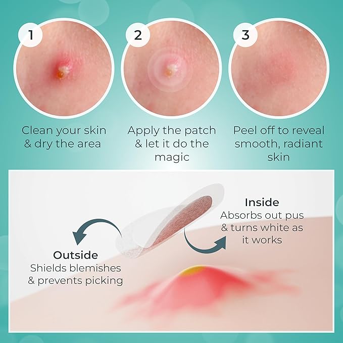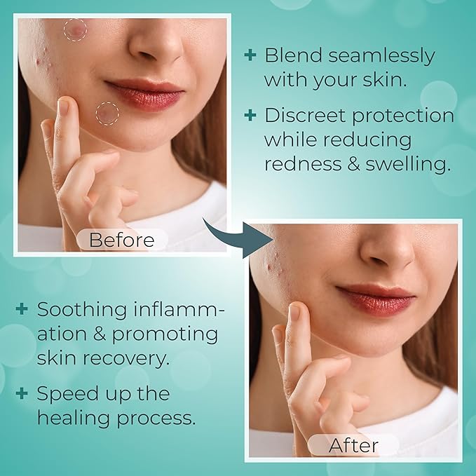 • Discreet & Ultra-Thin Design Barely noticeable hydrocolloid patches blend smoothly with all skin tones – perfect for daily wear at school, work, or the gym.