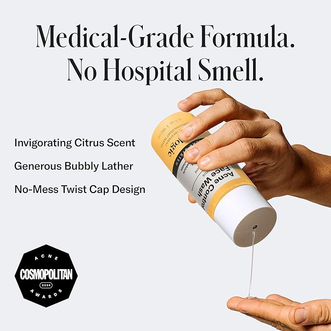 Geologie Acne Control Face Wash | 2% Salicylic Acid Exfoliating Cleanser | Clears Skin, Controls Oil & Prevents Breakouts | Clean Citrus Scent | For Men & Women | 6 fl oz