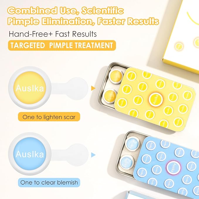 AUSLKA Light Therapy Pimple Patch, LED Red and Blue Light Hydrocolloid Zit Patches, Spot Dots for Blemishe, 6-Packs, Use 6-8 hours (Blue, Eliminate Pimple Patch)