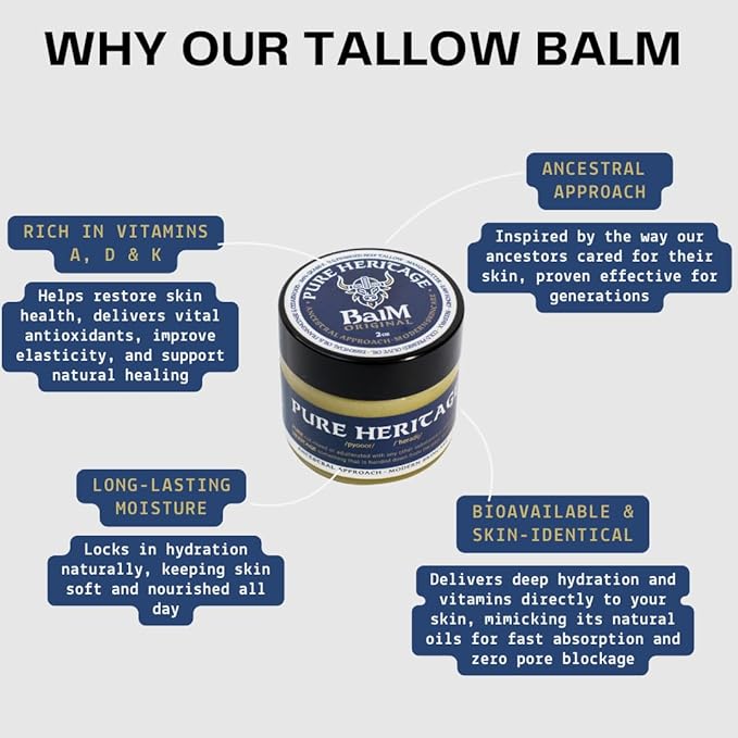 • NATURAL INGREDIENTS: Made with 100% grass-fed and finished tallow, blending traditional wisdom with pure, sustainable components for optimal skin nourishment