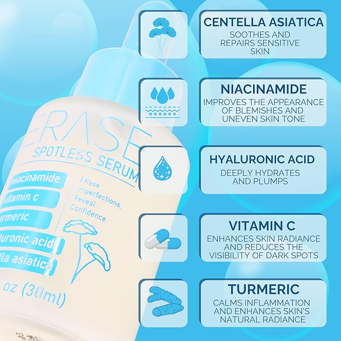 Spotless Serum - Vitamin C Serum for Dark Spots with Niacinamide 5%, Korean Skin Care, Proactive Acne Treatment For Face, Hyaluronic Acid Hydration, Soothing Turmeric & Centella Asiatica, 1fl oz