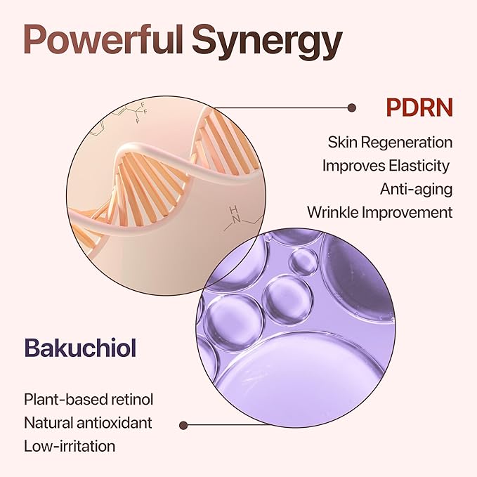 • Plant-Based Bakuchiol: Enjoy the gentle yet effective benefits of bakuchiol, a plant-based alternative to retinol. It works in harmony with PDRN, Bifida, and Collagen to moisturize, protect, and restore your skin’s natural glow.