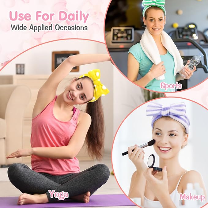 • FIT FOR ANY OCCASIONS: Best spa headbands for women goodie bag fillers with wide applied occasions, more functional for DIY facials, wash face, do beauty project, make up, mask routine, do housework, yoga, take shower and birthday spa party. Also as Christmas stocking stuffers for women adults teens, party favors for girls