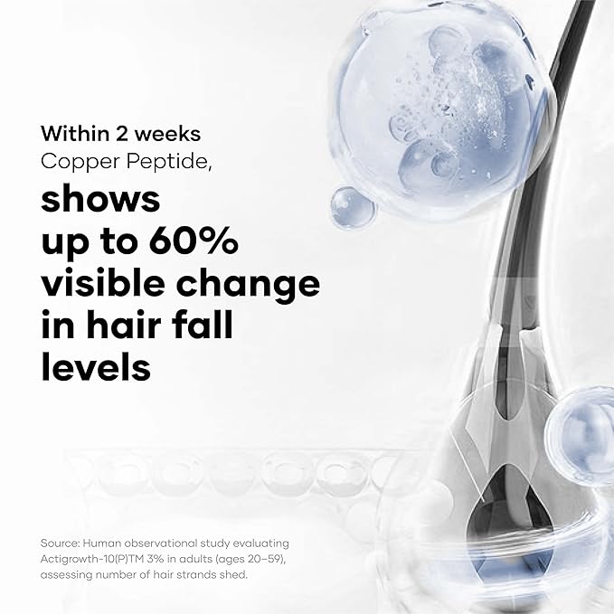 • Clinically Researched Actives: Infused with Procapil, Copper Peptide, Baicapil & Anagain, proven to reduce hair loss, activate dormant follicles, and improve hair density.