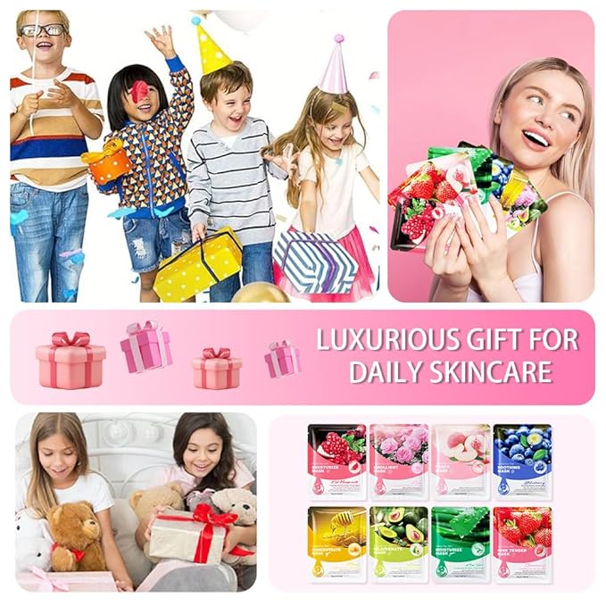 8 Pack Face Sheet Mask Skincare,Hydrating Face Mask For Sensitive Skin,Moisturize,Soothing,Nourish for All Skin Types,Natural Spa Party Facial Mask Skincare Set for Women Men Girls