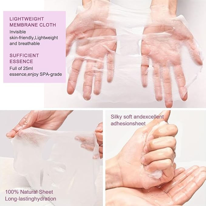 • FACIAL SKINCARE SHEET MASK:This premium women's skin care mask is silky smooth,moisturizing,refreshing and has increased efficacy and adhesion to block evaporation and lock in moisture for a hydrating effect that lasts all day