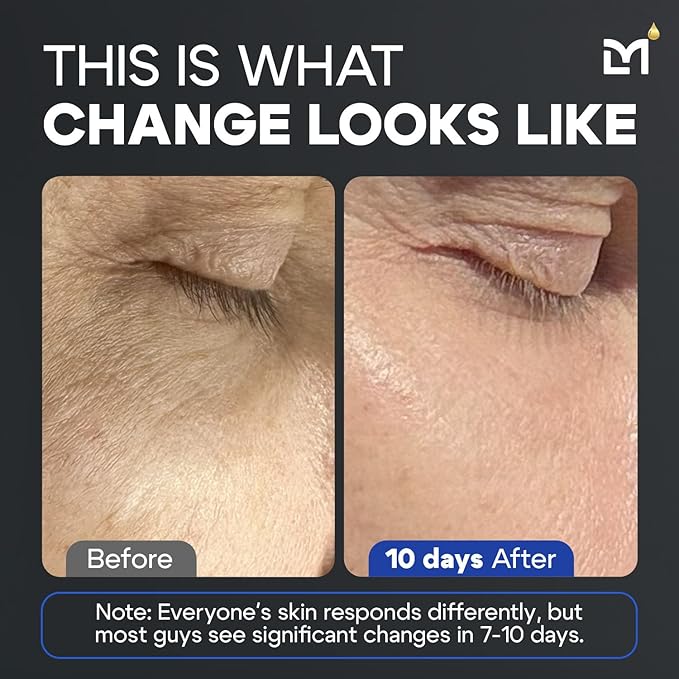 • You'll Notice a Difference Within Days: After 7-10 days with this peptide anti-aging serum, many guys see improvements in skin firmness and texture, with stubborn lines starting to soften around the eyes and forehead; Keep in mind that anti-aging for men's skin care results can vary based on your age, skin, and lifestyle