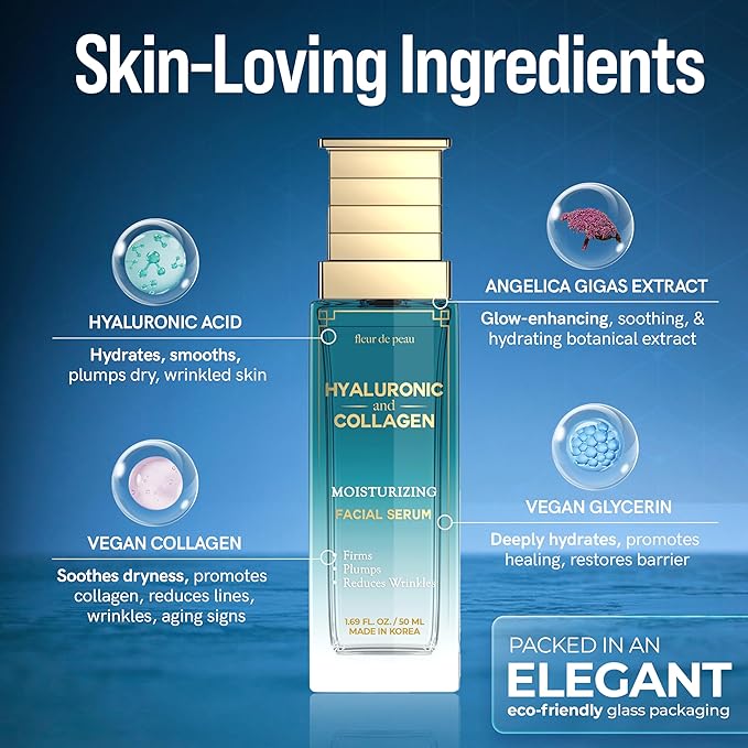 • POWERFUL KOREAN BEAUTY FORMULA - Our advanced serum is enriched with Hyaluronic Acid, Collagen, Glycerin, and Angelica Gigas Extract, which work together to boost hydration, improve firmness, and create a dewy, radiant glow. Achieve softer, smoother, and firmer skin with this nourishing anti-aging powerhouse.
