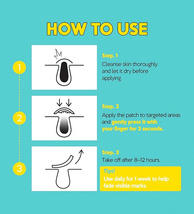 • QUICK & EASY APPLICATION. Designed for effortless use, these hydrocolloid patches apply in seconds. Simply place one on clean, dry skin and press gently for a secure fit. Once it turns opaque, remove and replace if needed. The simple process makes it a convenient part of any skincare routine.