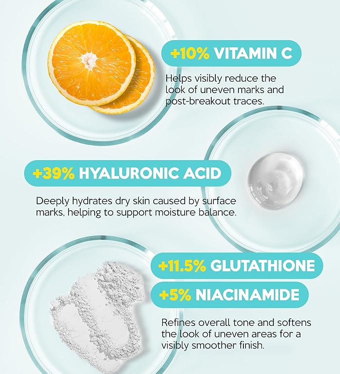 • 10% VITAMIN C. Formulated with 10% pure Vitamin C, this spot patch offers focused care for uneven areas while keeping the skin’s surface smooth. Its concentrated formula works to refine and refresh troubled spots without physical penetration.