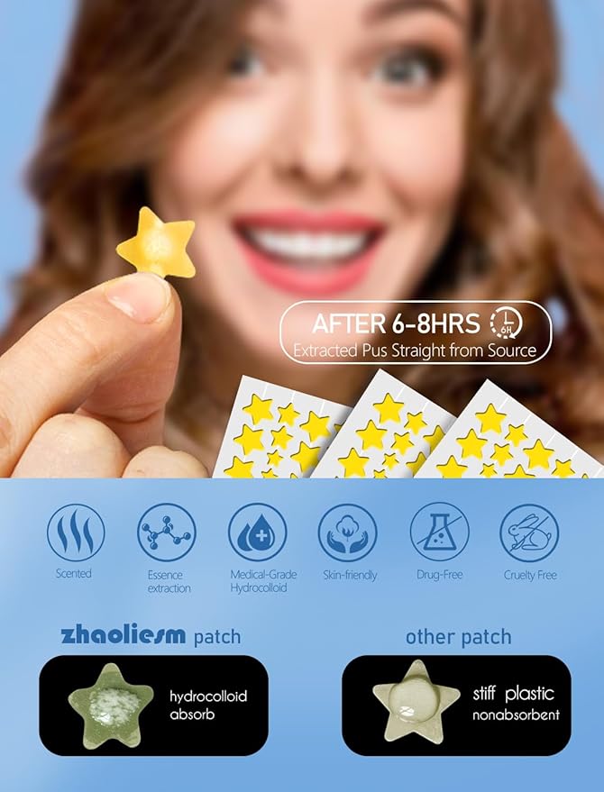 • ZHAOLIESM Acne Patch is a hydrocolloid patch that has the necessary odor. Yellow star pimple patches for daytime and overnight