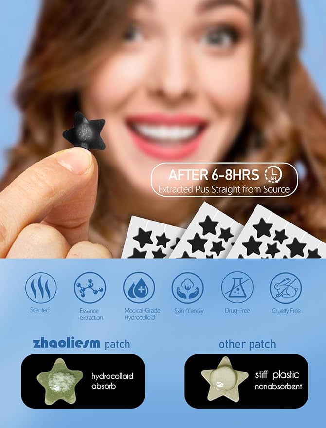 • ZHAOLIESM Acne Patch is a hydrocolloid patch that has the necessary odor. black star pimple patches for daytime and overnight