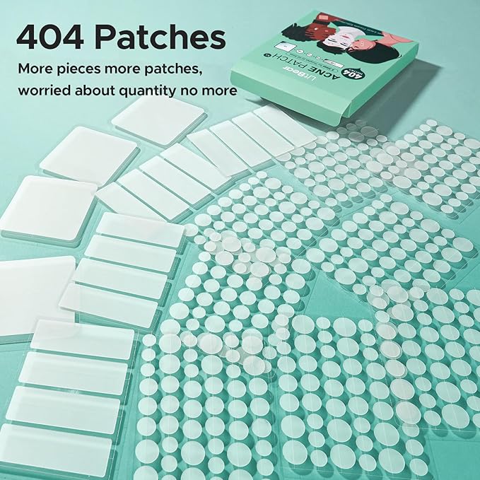 • 5 Sizes 404 Patches for All Your Need: With 5 sizes and a total of 404 pimple patches (8mm, 10mm, 12mm, 60x60mm, and 60x20mm), including 20pcs large pore strips. These combination large zit patches will help you with the smallest of blemishes to the biggest of breakouts