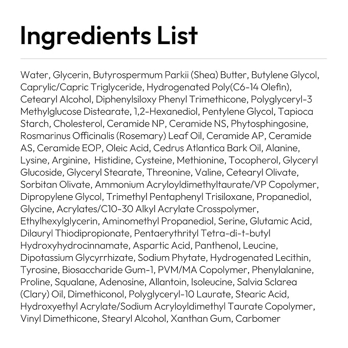 • 4 ESSENTIAL MOISTURIZING COMPONENTS: Formulated with four essential moisturizing ingredients your skin needs. This cream includes a 5% Cholesterol + Ceramide + Fatty Acid complex, hydrating Glyceryl Glucoside, nourishing Shea Butter, and 17 vital Amino Acids for comprehensive skin support