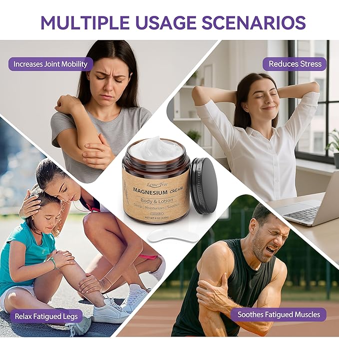 Magnesium Cream for Sleep, Topical Nighttime Magnesium Lotion for Leg, Cramps & Pain, Muscle Soothing, Magnesium Body Butter with Jojoba Oil, Shea Butter & Vitamin E, Safe for Kids (Lavender)