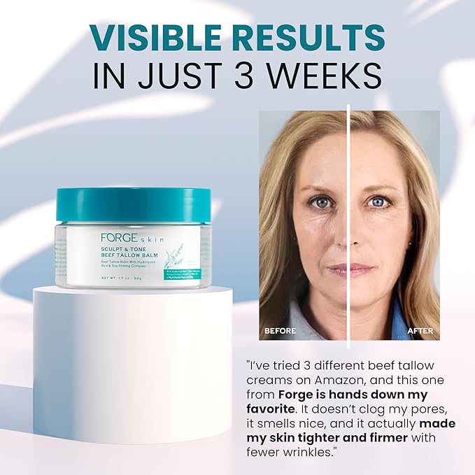 • FORGE SKIN ADVANCED ANTI-AGING FORMULA – Based supplies tallow and honey balm , this honey tallow balm triple firming neck cream helps reduce wrinkles, fine lines, and tighten skin. Designed for women, Beef tallow face moisturizer Tallow honey balm deeply nourishes and firms the skin, restoring a youthful, radiant glow. Forge grass fed beef tallow for skin tightening for neck wrinkles cream. Your anti aging triple neck firming cream skin’s daily and nightly repair processes are the building