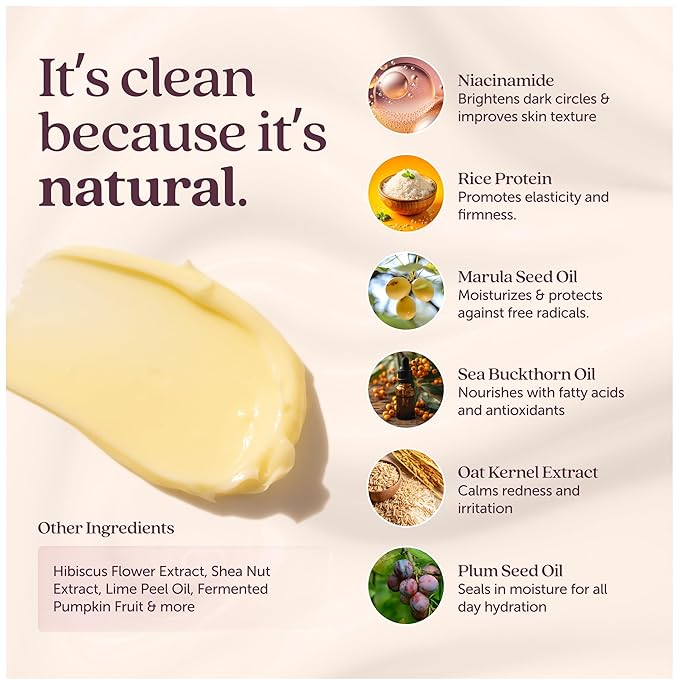 • A Garden of Glow: Infused with plum and hibiscus to hydrate and firm, sea buckthorn and oat kernel to soothe and strengthen the moisture barrier, and pumpkin ferment to promote a brighter, more even tone. Marula and shea replenish essential lipids for soft, supple skin, while rice protein helps smooth and firm for a more rested, youthful look.