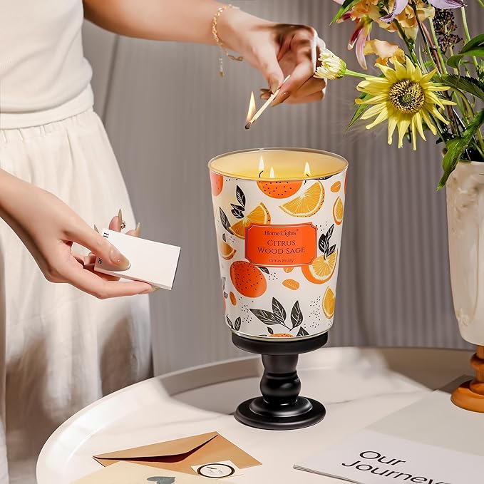 • 【Citrus Wood Sage Fragrance for Relaxation】4-Wick Candles capture the essence of Citrus Wood Sage with its fresh, citrusy top notes, a heart of aromatic sage, and a warm, woody base of cedarwood and musk. perfect for cultivating a serene ambiance in living rooms, bedrooms, or bathrooms.