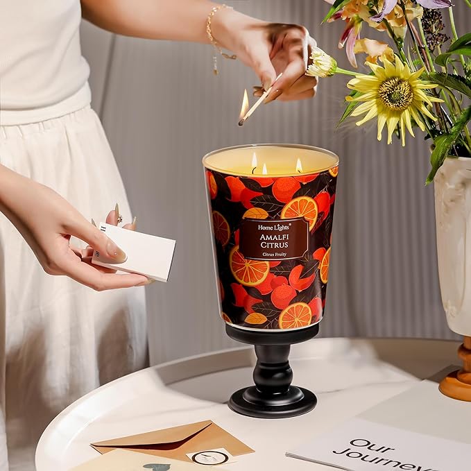 • 【Amalfi Citrus Fragrance for Relaxation】Scented candles capture the essence of Amalfi Citrus with its bright, zesty top notes, a heart of juicy citrus, and a fresh, uplifting base of bergamot and musk. Perfect for cozy spaces like living rooms, bedrooms, or bathrooms to unwind and relax.
